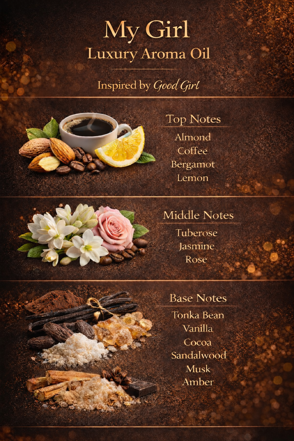 Base notes:Tonka Bean,Vanilla,Cocoa,Sandalwood,Musk,Amber.